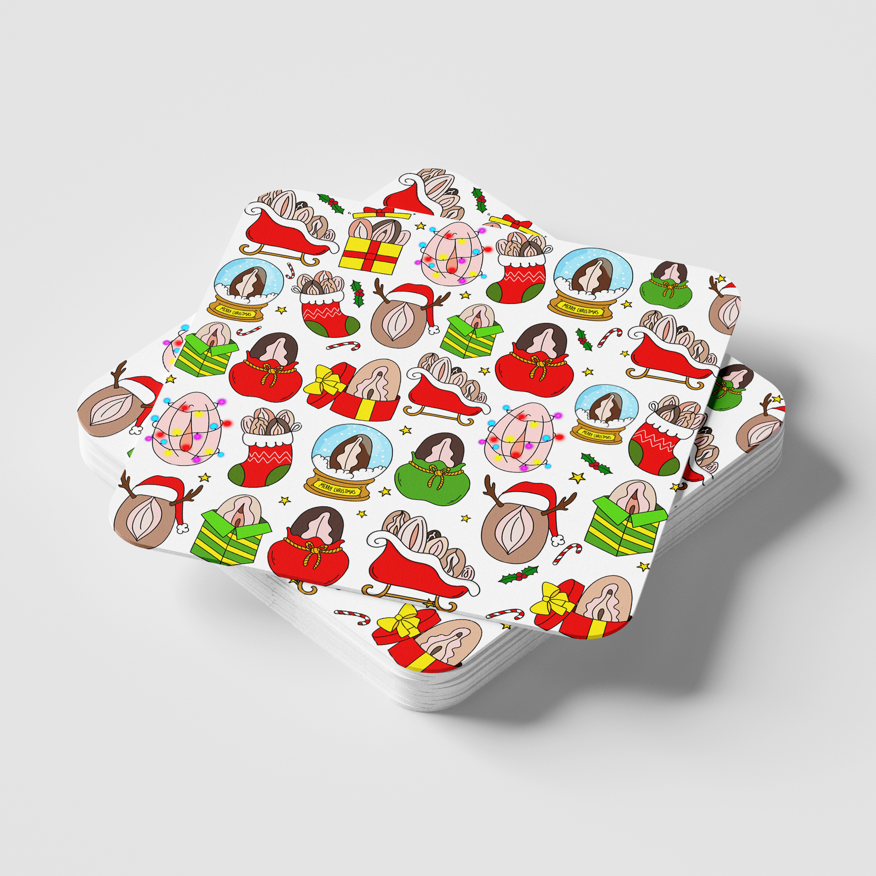 Get ready to deck the halls with laughter as you introduce your loved ones to these hilarious vagina-themed coasters, mugs, and wine glasses. It's the perfect gift trio for those who appreciate a side of humor with their holiday spirit!
