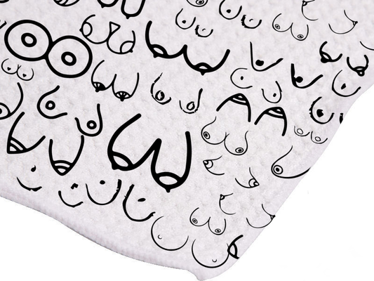 Bosoms Tea Towel – an elegant, artistic, and empowering kitchen towel celebrating body positivity & individuality.