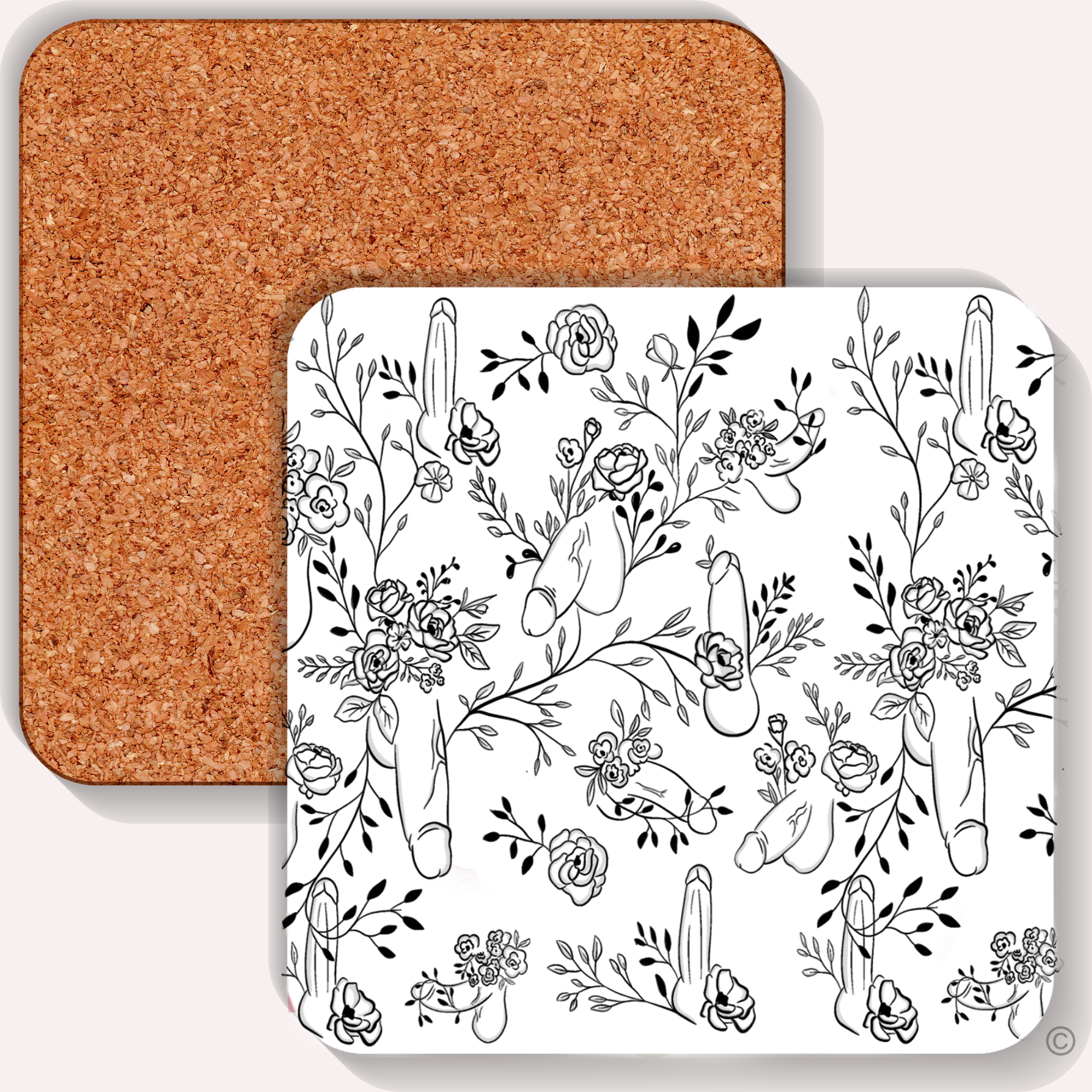 Add a cheeky twist to your tableware with our Floral Willy Coaster - the perfect blend of humor and style. Featuring an elegant floral design intertwined with playful doodles, this coaster is designed for those who appreciate a bit of sass with their coffee or wine. Whether you're hosting a brunch, a wine night, or just enjoying your morning brew, this coaster adds personality to every sip.