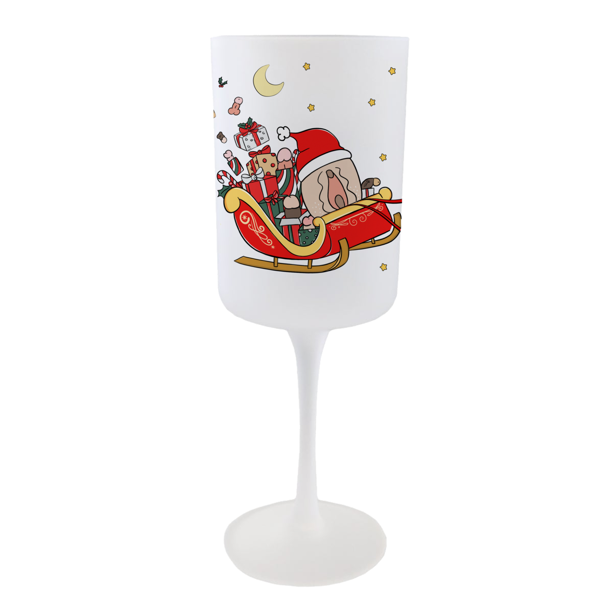 Elevate your holiday celebrations to a whole new level of hilarity with our Santa's Sleigh Wine Glass. It's the ultimate toast to joy, laughter, and a Christmas that's as uproarious as it is unforgettable!